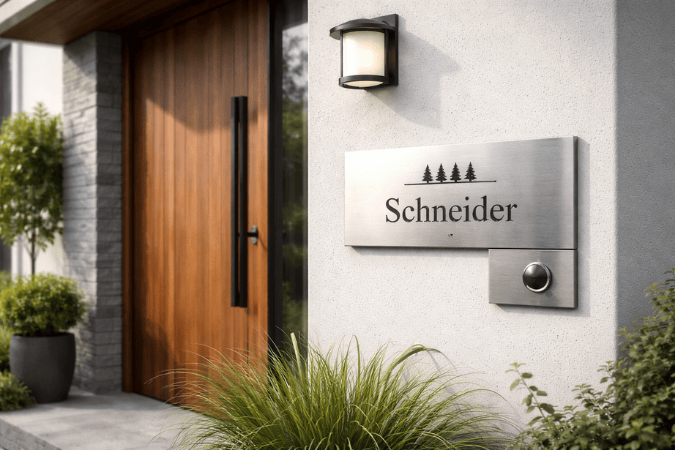 Bei der Auswahl des Stilrichtungs für dein Namensschild ist es wichtig, dass dieses harmonisch zum Gesamteindruck deines Hauses passt. Das Design sollte das architektonische Erscheinungsbild widerspiegeln und den Charakter deiner Immobilie unterstreichen. Für ein modernes Haus eignen sich klare Linien, minimalistische Gestaltung und neutrale Farbtöne, während bei einem rustikalen Landhaus eher Naturmaterialien, warme Farben sowie verspielte Details im Vordergrund stehen sollten.